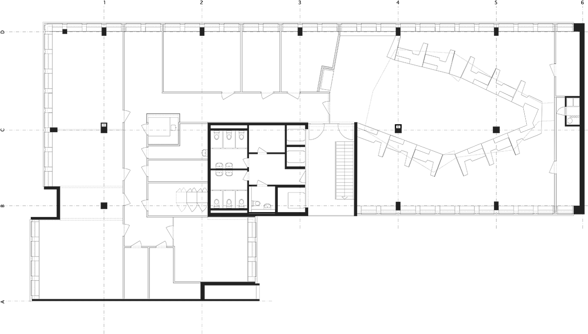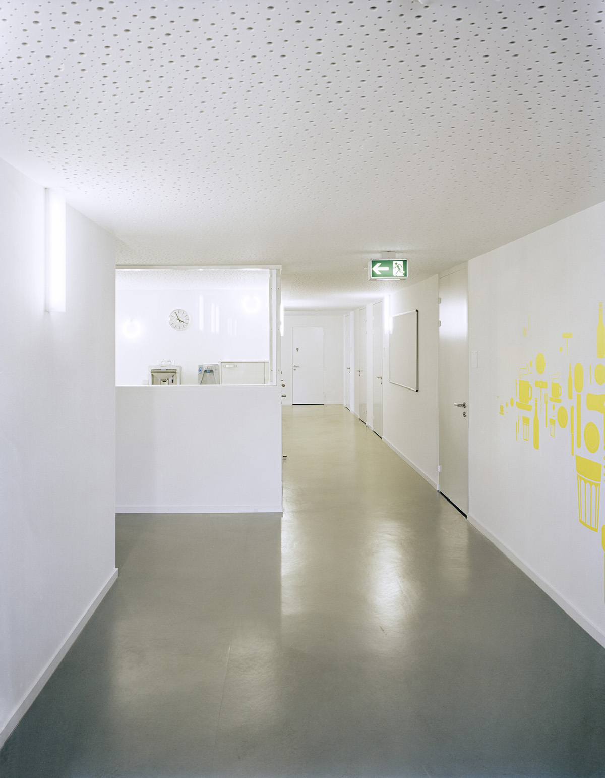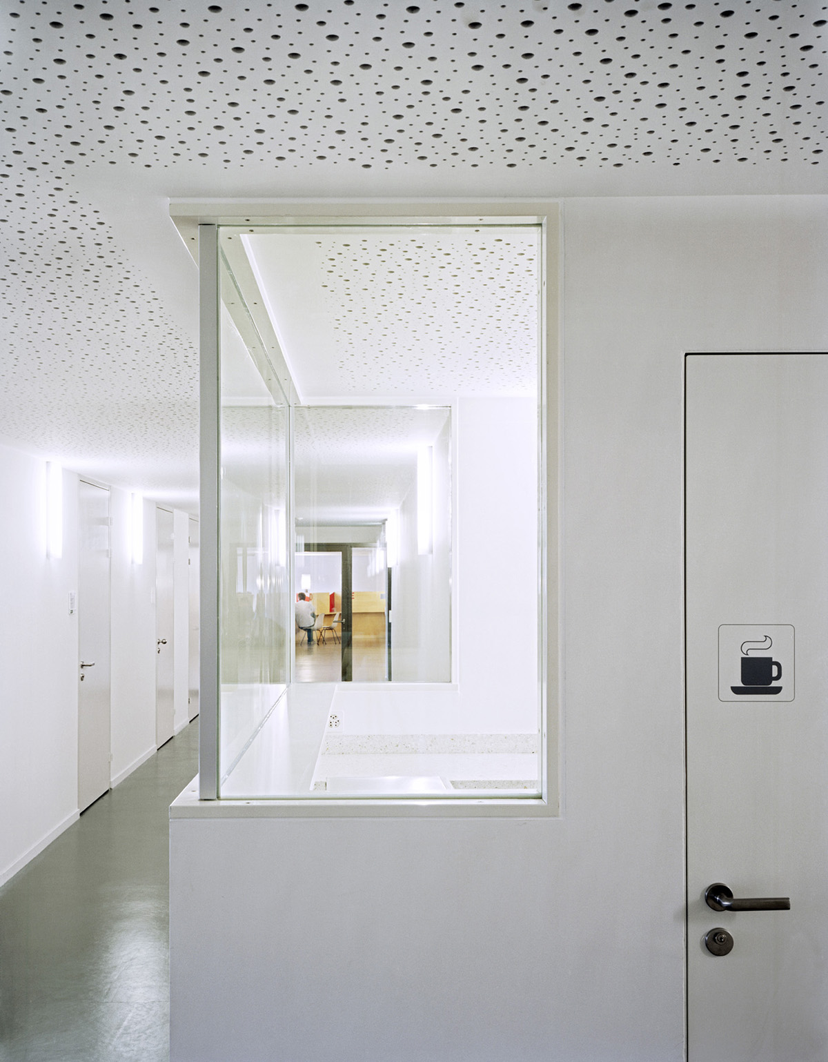 Für das Bevölkerungsamt der Stadt Zürich wurden am Bahnhof Örlikon eine Schalterhalle sowie die zugehörige Infrastruktur in ein bestehendes Bürohaus eingebaut. Das Herzstück der Anlage, die Schalterhalle, ist so gelegt, dass der Kundenbereich Fassadenanstoss hat und die Wartenden das rege Treiben am Bahnhof Oerlikon beobachten können. Die elf Schalter sind im strengen Geschossgrundriss als amorphe Raumkonfiguration aufgespannt. Durch die gespiegelten Arbeitsplätze, deren Trennwände einseitig leuchtend bemalt sind, verändert sich im Durchschreiten die Perspektive ständig. Die Atmosphäre wird vom hellen Holz, den satten Farben und der Beleuchtung unkompliziert und freundlich gestaltet.
