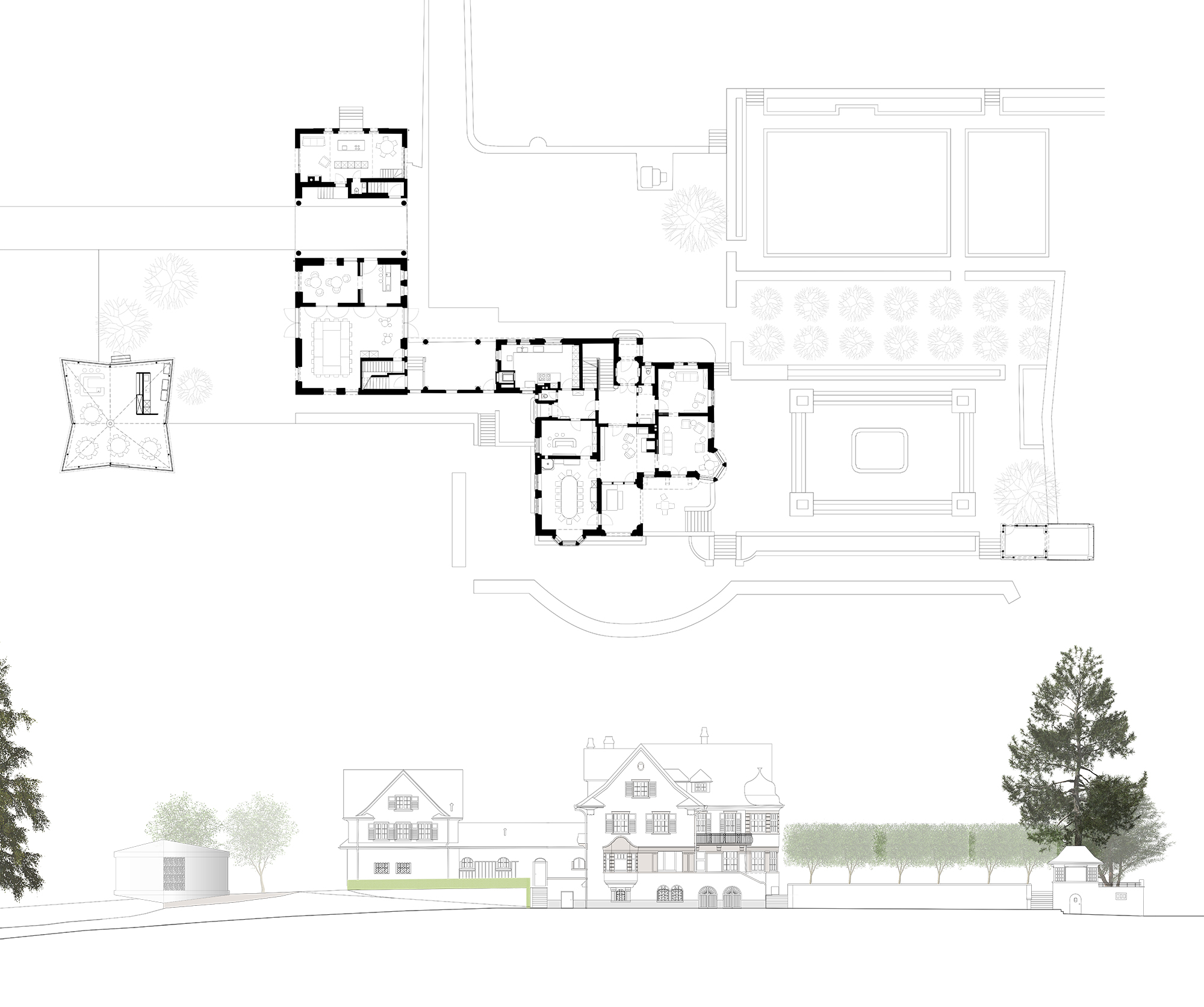 Neu wird das unter kantonalem Denkmalschutz stehende Ensemble als Begegnungsort für die Familie und die Führungskräfte der familieneigenen Firmen dienen. Die bis heute in weiten Teilen unveränderte Villa und Chauffeurhaus werden behutsam und gezielt den heutigen Bedürfnissen angepasst und restauriert. Der Landschaftsgarten wird unter Einhaltung der Aspekte von Landschafts- und Denkmalschutz mit einem Pavillon, einem Pool und einem Tennisplatz ergänzt.