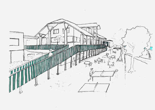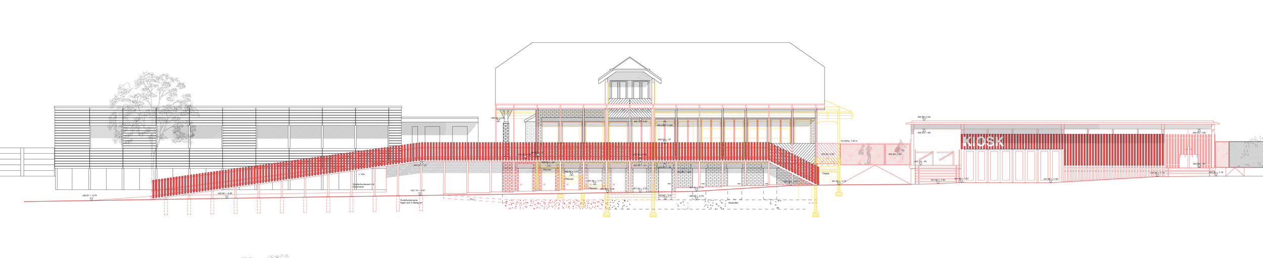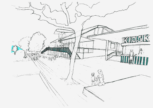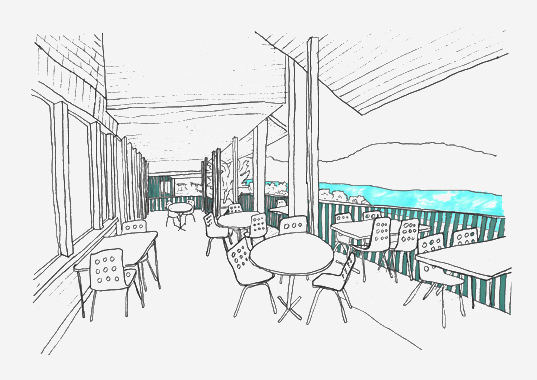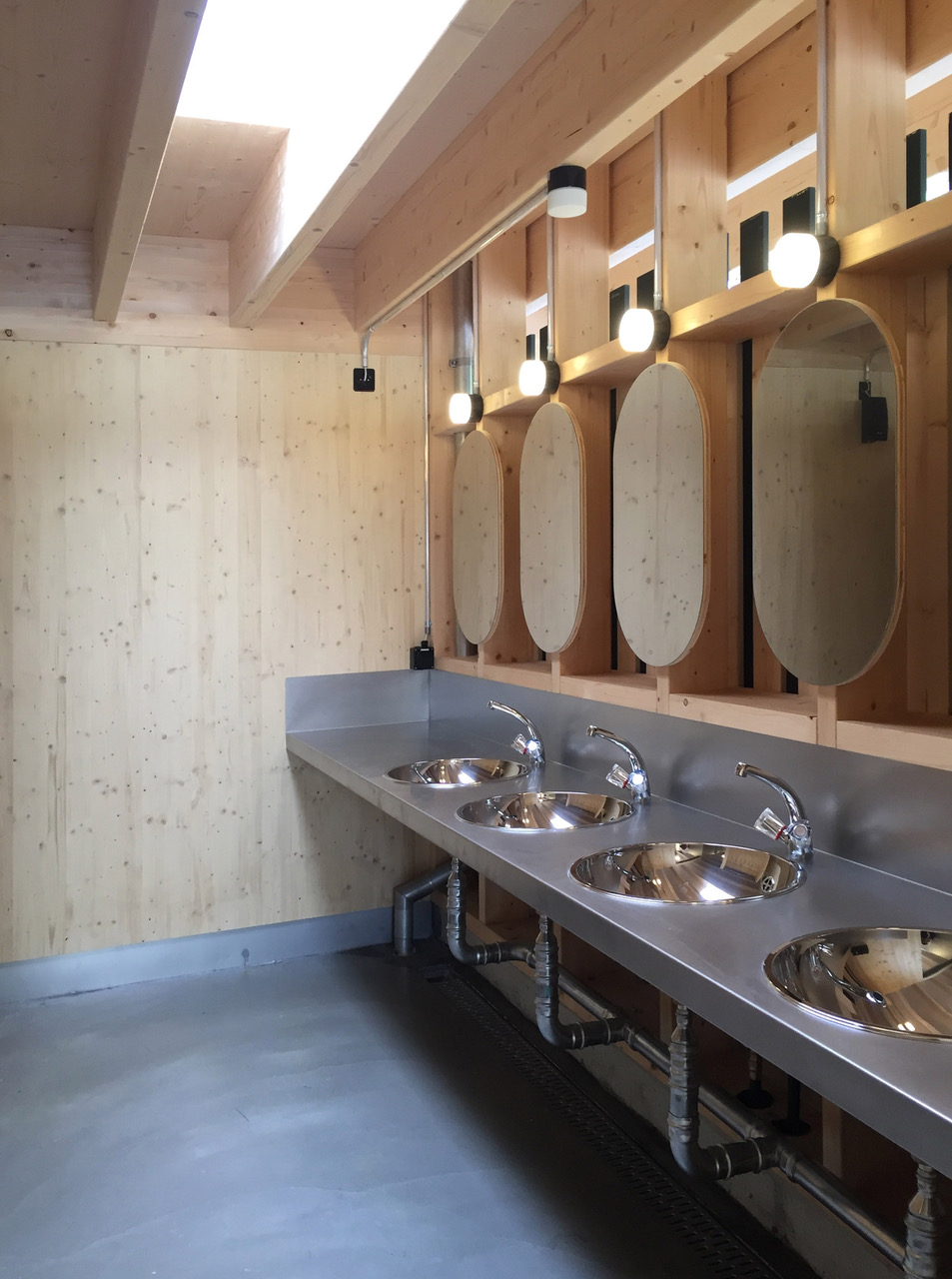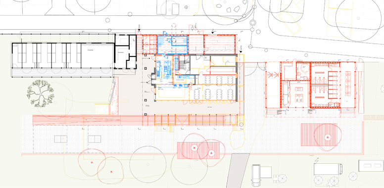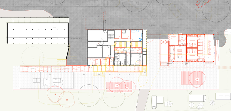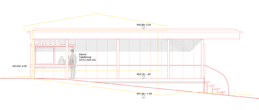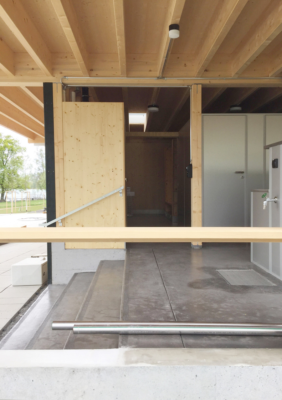Mit einfachen Holzanbauten und einem Neubau sowie einem grosszügigen Platz können die veränderten Bedürfnisse der Strandbadbetreiber erfüllt werden. Zudem erhält die Badeanstalt ein neues Gesicht, das einen sommerlich leichten Charakter hat. Der neue Eingang verändert im Strandbad die Aussenraumsituation erheblich. Die etwas tiefer gelegene "Piazza" im Anschluss an den Kiosk bildet den Sammelplatz für alle Nutzer des Strandbads – Badegäste, Gruppenhausnutzer, Camper und Wassersportler – und verbessert die Sichtverbindungen im Areal um ein Vielfaches.